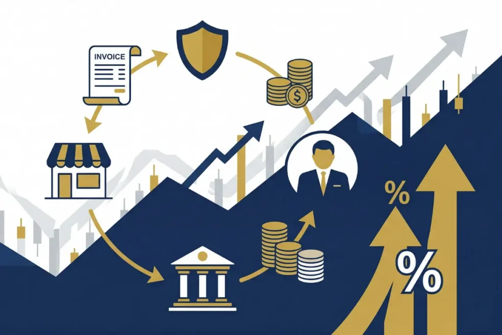 Como inversionista, tu rentabilidad proviene del descuento aplicado a la factura. Si una factura de S/ 100,000 a 90 días se compra por S/ 97,000, el diferencial de S/ 3,000 es la ganancia bruta de la operación.